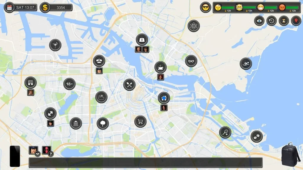 - 22:00 – Your Room: Watch an adult film on your laptop. If a character’s Arousal is high enough, they might join you, leading to a shared scene that skyrockets their meter.